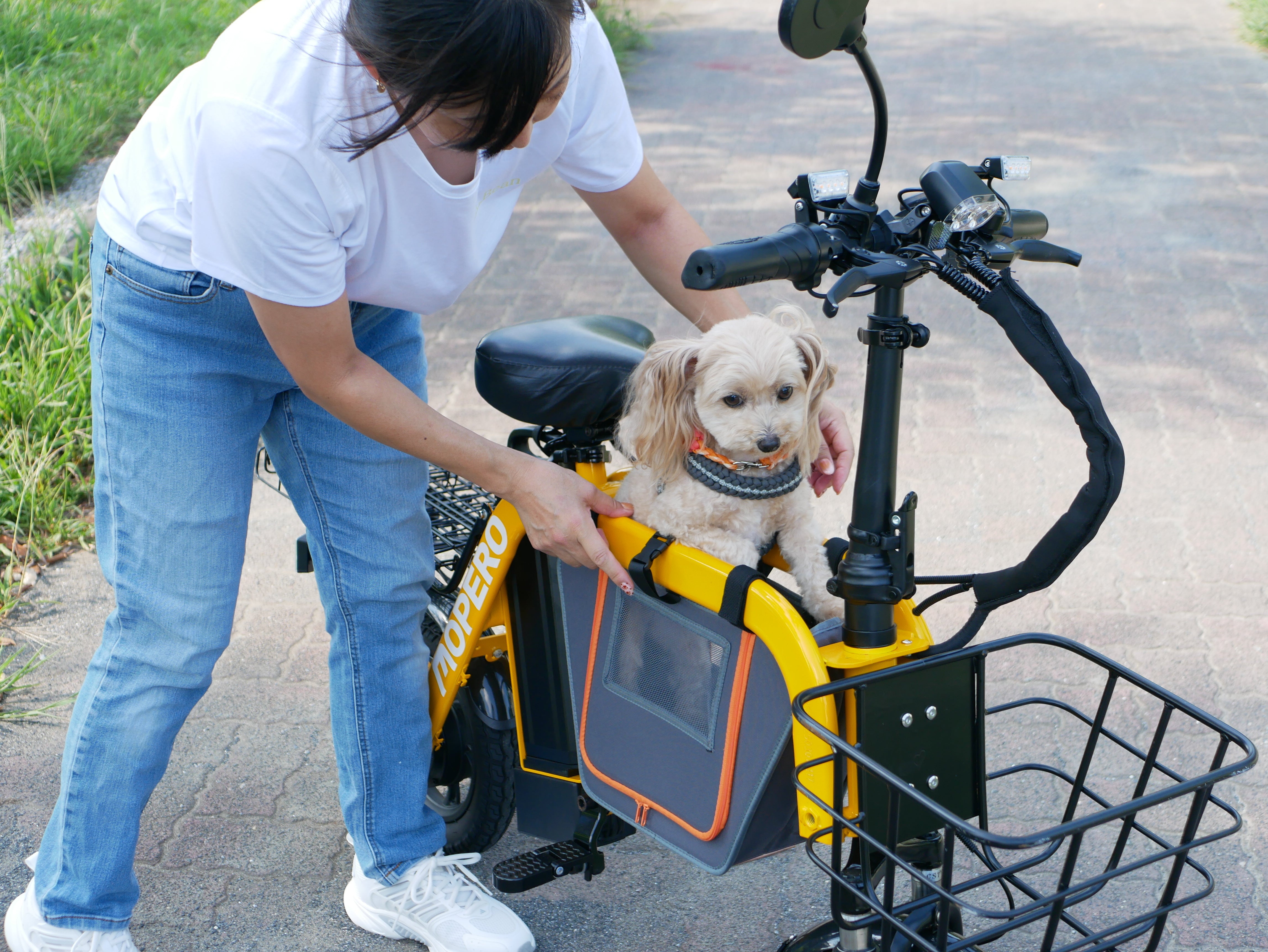 大切なペットと一緒に快適なお出かけを楽しめる、MOPERO mini cargo・Fiido Q1S専用のセンターバッグです。